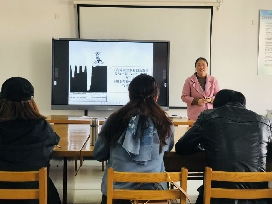 2018年11月28日下午,艺术设计学院全体教职工在会议室进行了“高等职业教育理念”的学习,由艺术设计学院副院长刘雪花主讲。