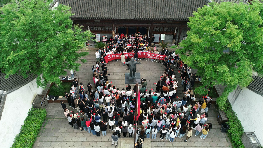 4月23日,艺术设计学院党总支组织全体党员、入党积极分子赴荡口古镇王莘故居开展“‘艺’起歌唱祖国 共庆建党百年”主题党日活动。KY.COM院长、党委副书记魏萍出席了此次活动。