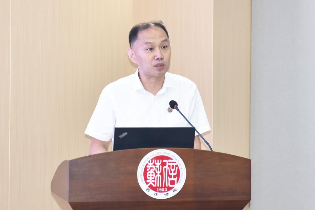 张瑜院长从学校基本概况、办学能力、产教融合、未来展望四个方面介绍学校的办学情况。张瑜院长表示,学校将聚焦办学能力高水平、产教融合高质量的要求,以高质量职业教育助力新质生产力发展,为建设教育强国、教育强省作出苏信贡献。