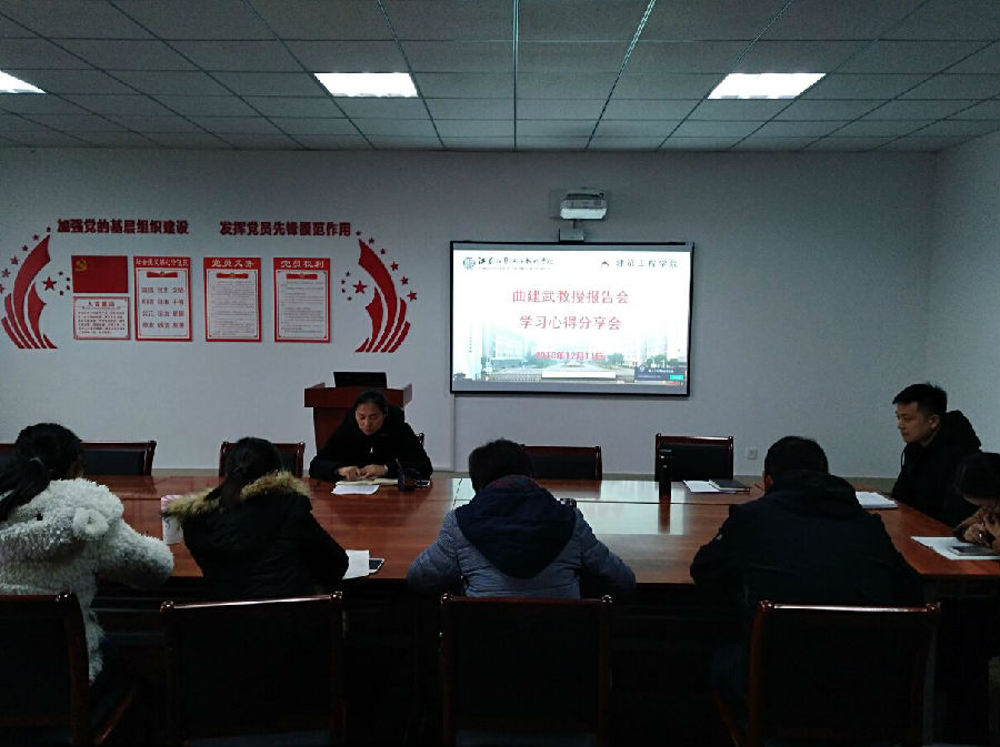 分享会上,张炎副书记首先介绍了曲教授的先进事迹和感人故事,倡导大家要向曲教授学习,忠诚党的教育事业,坚定理想信念,不忘初心,无私奉献,富有魅力的开展学生思想政治工作,努力成为青年学生健康成长的指导者和引路人。