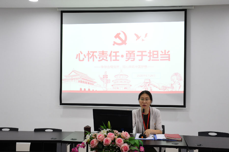 6月28日,商学院党总支书记蔡丽巍同志给商学院全体党员教师上了题为“心怀责任,勇于担当”的党课。