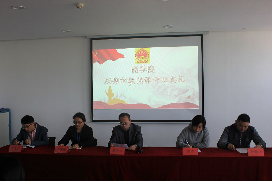 4月17日,商学院第26期党校开班典礼在S4-410教室隆重举行。商学院党总支蔡克炎书记、党总支陈艳艳副书记、学生党支部书记吴洁老师、辅导员黄飞剑老师及75名入党积极分子参加了此次开班仪式。仪式由李善战老师主持。