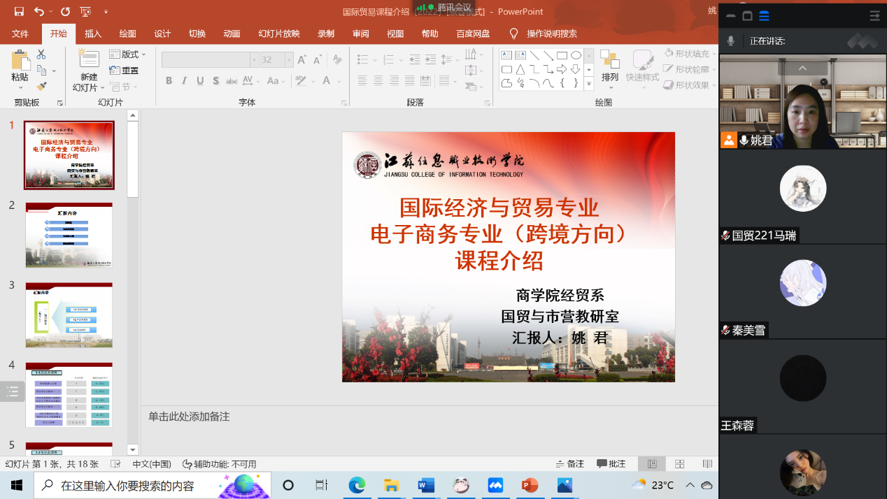 9月14日,国际经济与贸易专业和电子商务专业(跨境方向)举行线上2022级新生入学专业教育活动。专业负责人张晓燕老师、教研室专任教师和国贸221班和电商224班(跨境方向)全体新生参加了活动,活动分为两个阶段进行。